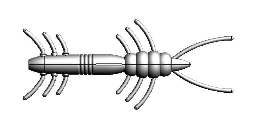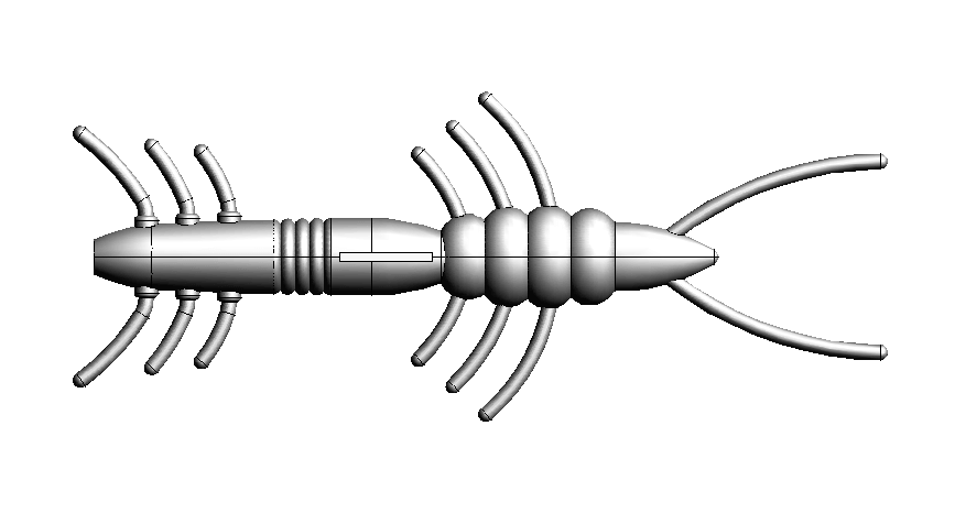 この計画は、フナムシを擬似餌化できないかというところからスタートしました。およそ110万種いると言われている節足動物や約7万種いる甲殻類の中からアノマロカリス、ダイオウゾクムシ、シャコ、ニホンスナモグリ(ボケ)等の様々な生物を参考に、海底を這うことで知られる棘皮動物 7,000種の中からセンジュナマコ等の特徴なども加え、改良を重ねて最終的には独自のシンプルなクリーチャーワームへと進化しました。